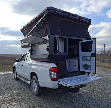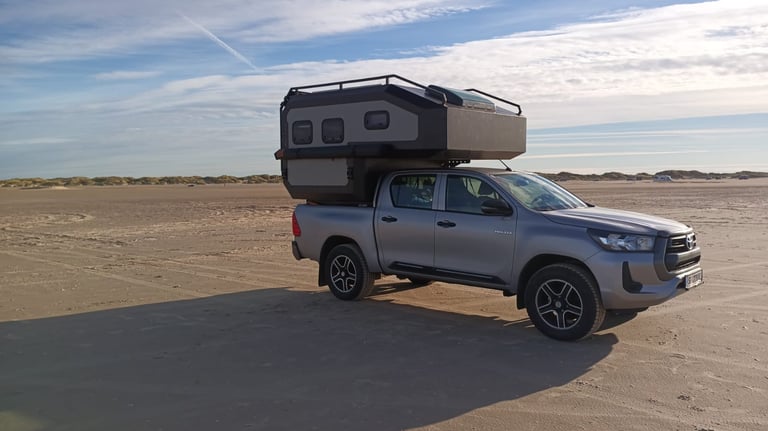 Unsere Wohnkabinen passen auf gängige Pickup-Modelle wie Ford Ranger, Toyota Hilux oder VW Amarok und ermöglichen sowohl komfortables Reisen auf der Straße als auch echtes Offroad-Erlebnis im Gelände.